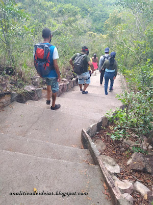 Depois de nos situarmos na pousada e de um merecido almoço, contactamos um guia turístico na Associação Comunitária de Guias de Lençóis. Outras agências de turismo locais também disponibilizam a contratação de condutores turísticos. A tão sonhada subida ao Morro do Pai Inácio não seria possível nessa viagem. Devido a pandemia alguns pontos turísticos estavam fechados ao público até aquele momento. Após apresentar as opções de pacotes e variados preços, optamos por um passeio a contento daquela primeira tarde.